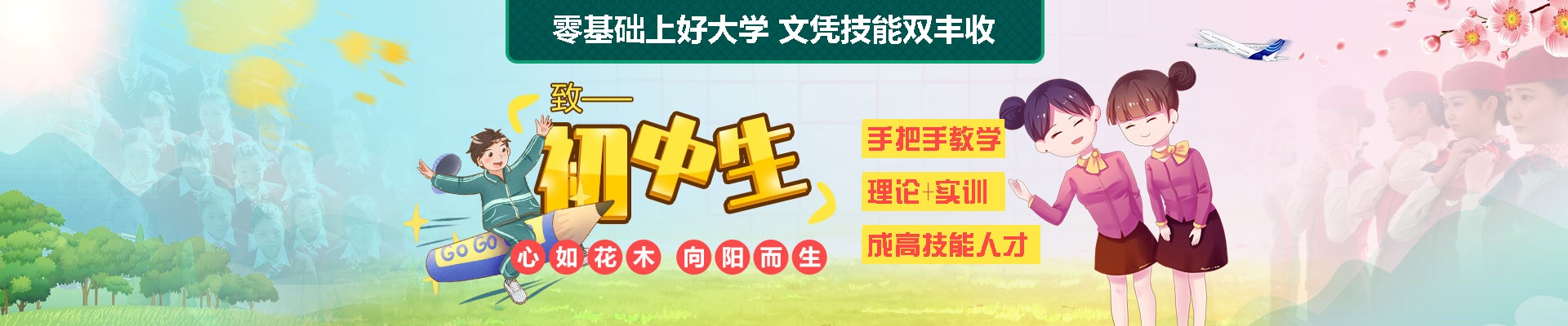 这是个令很多初中生及其家长头疼的问题,很多初中毕业生,不想把自己限制于一成不变初升高这样一成不变的升学模式中,但他们却还有自己的梦想,希望能按照他们的兴趣爱好学自己想学的专业。空乘专业越来越被中高考学生所喜爱,初中生意愿报空乘专业的也越来越越多,那么,初中生能否学习空乘专业?初中生能否跨过高中直接上大学学习呢?初中生可以通过报考航空院校开设的航空预科来实现,通过预科阶段的过渡学习再上航空院校空乘专业的专本科课程。预科阶段学习时间为1年,1年除学习高中阶段基础课程外还有空乘基本专业课程学习,更早的实现学生们的空姐愿望。